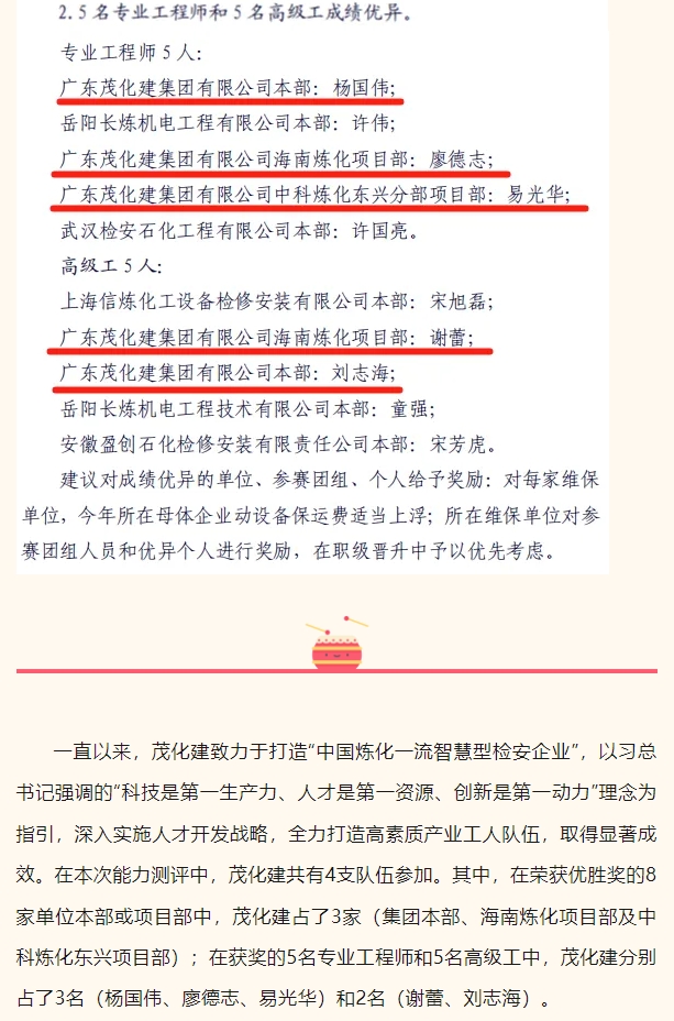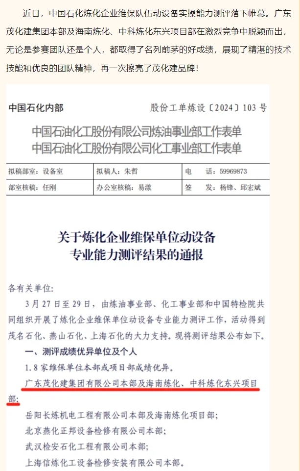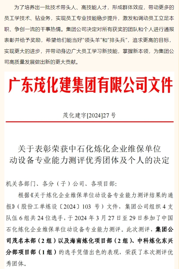 祝賀!茂化建在中石化煉化企業(yè)維保隊(duì)伍動(dòng)設(shè)備實(shí)操能力測(cè)評(píng)中成績優(yōu)異,名列前茅