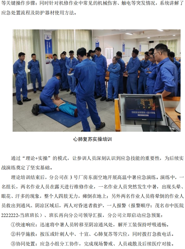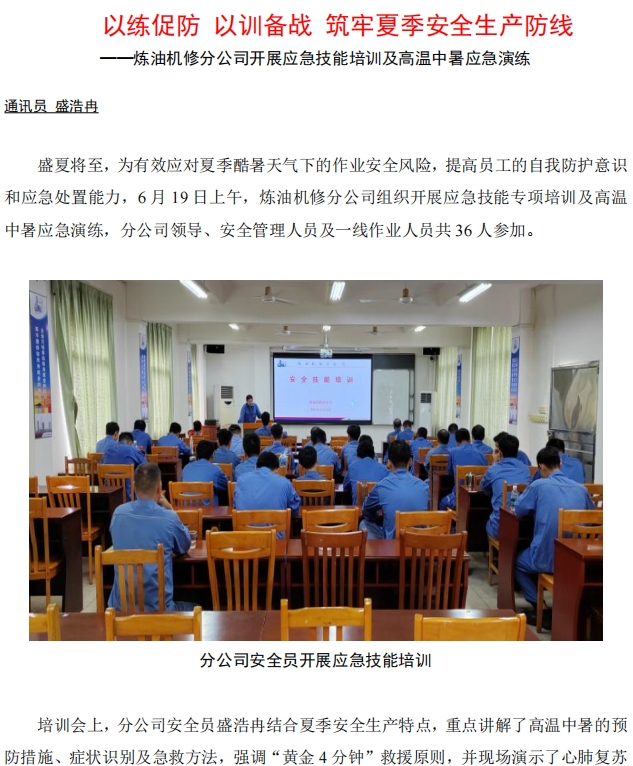 煉油機修分公司開展應(yīng)急技能培訓及高溫中暑應(yīng)急演練