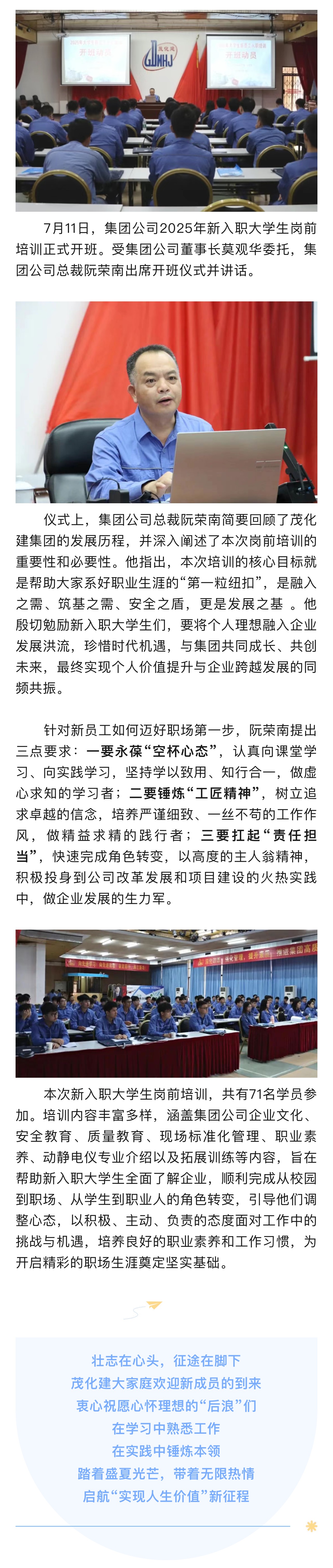 萌新報到!廣東茂化建集團2025年新入職大學(xué)生崗前培訓(xùn)正式開班