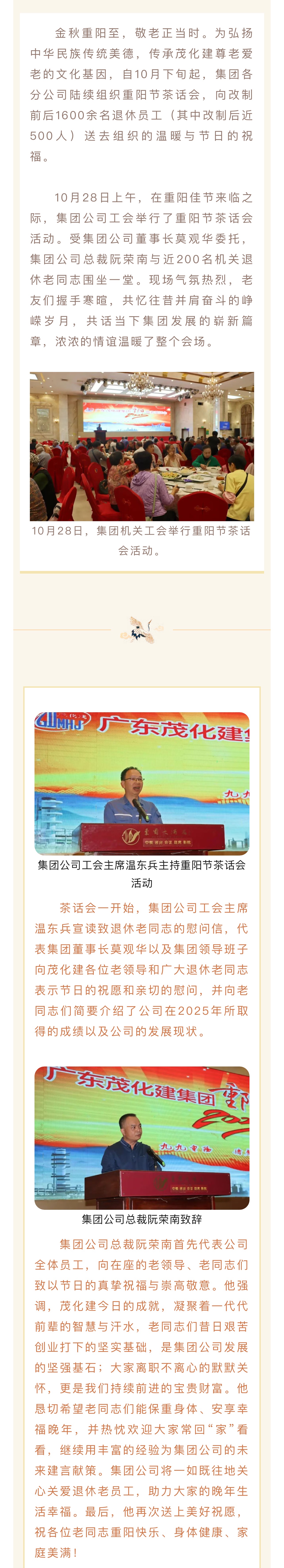 情暖重陽,共話發(fā)展—— 廣東茂化建集團(tuán)開展2025年重陽節(jié)茶話會(huì)活動(dòng)