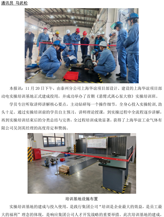 泰州分公司上海華誼項(xiàng)目部實(shí)操培訓(xùn)基地建成開(kāi)班