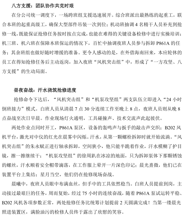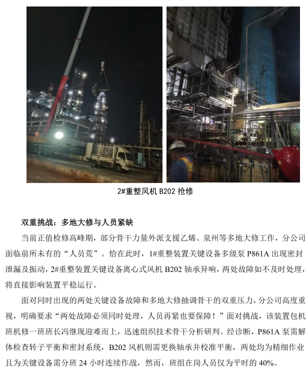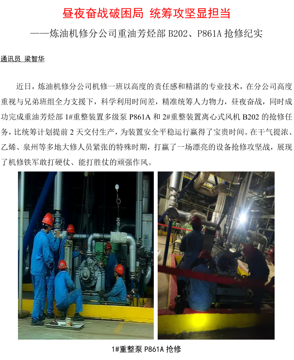 煉油機(jī)修分公司重油芳烴部 B202、P861A 搶修紀(jì)實(shí)