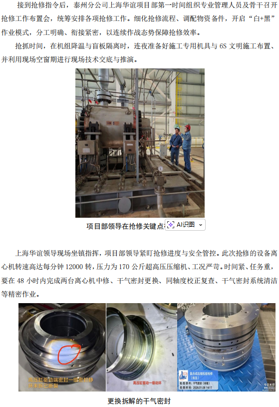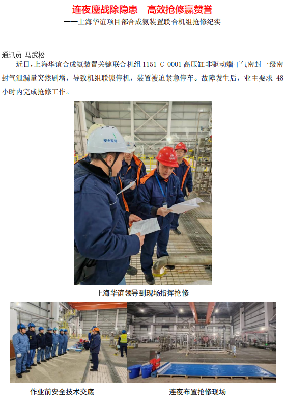 上海華誼項目部合成氨裝置聯(lián)合機組搶修紀(jì)實
